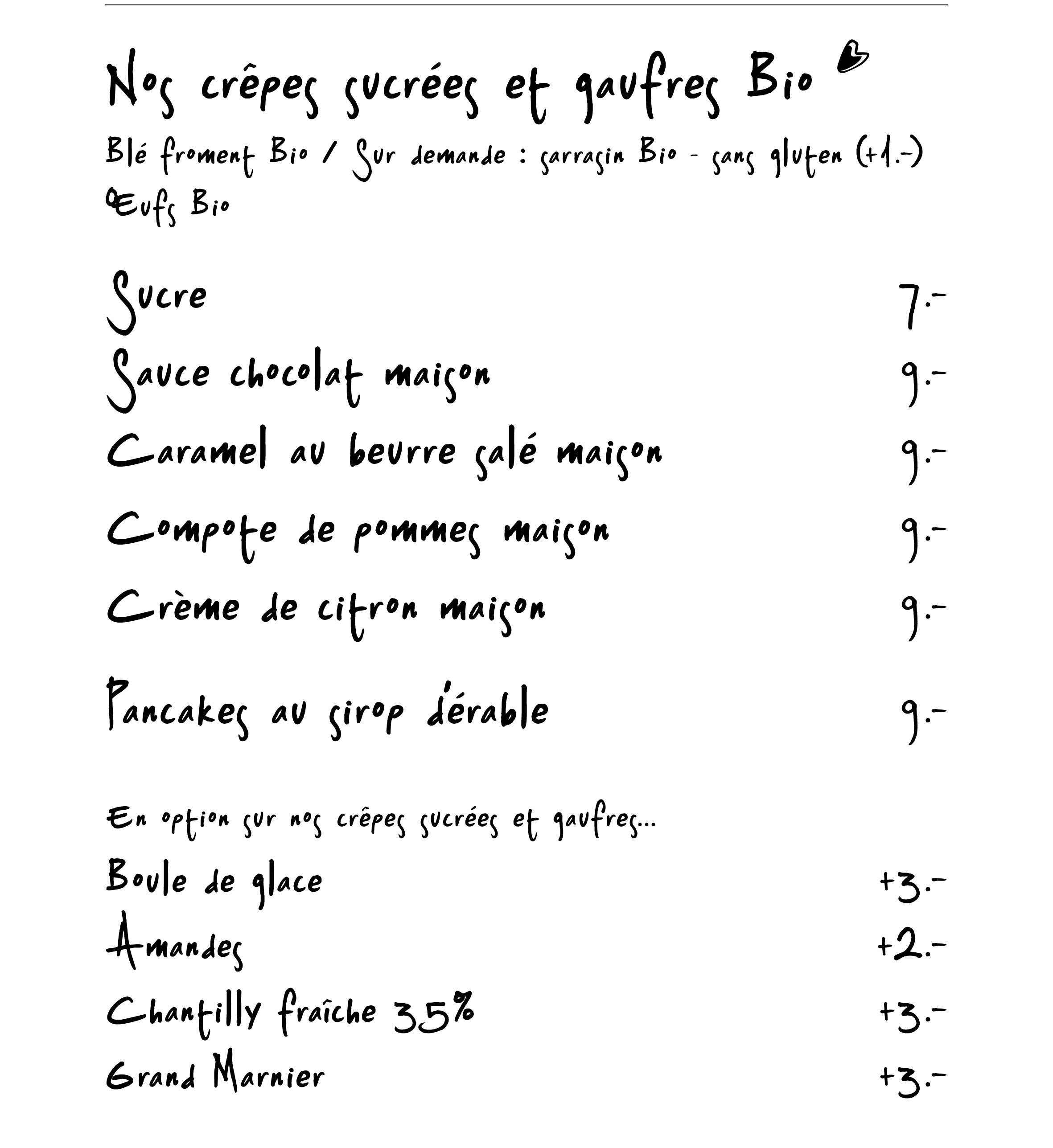 Pour votre plaisir: Pancakes, gaufres, Omelettes, Crêpes salées et sucrées.